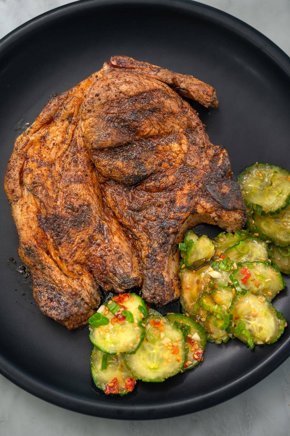 In Filipino cooking, grilled pork chops look different – soy sauce, citrus, garlic, sometimes banana ketchup for the glaze. My Filipino BBQ version goes that route. This recipe takes the American approach with a dry brine and spice rub. Both get the job done.