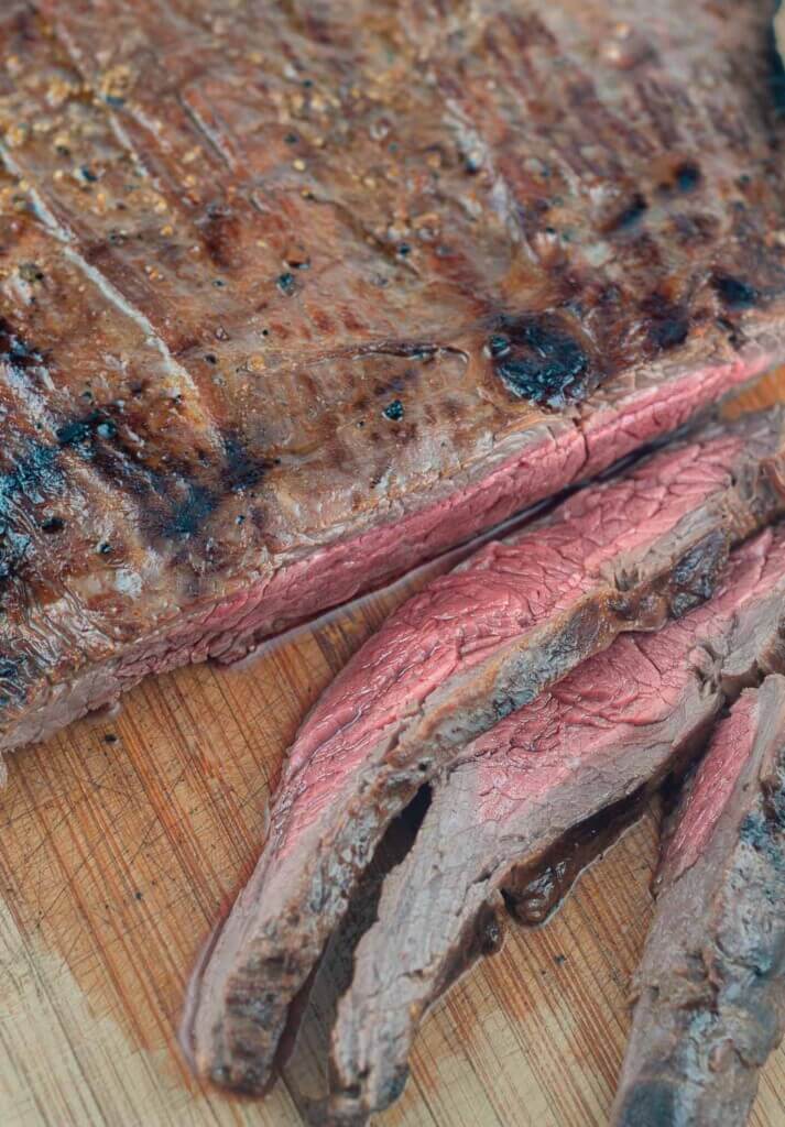 - High heat grilling – Flank steak is thin. You want to cook it fast over high heat so the outside gets a nice char while the inside stays juicy.