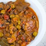 Add the brown sugar, green olives, black olives, and mushrooms. Stir and cook for 5 to 8 minutes.
